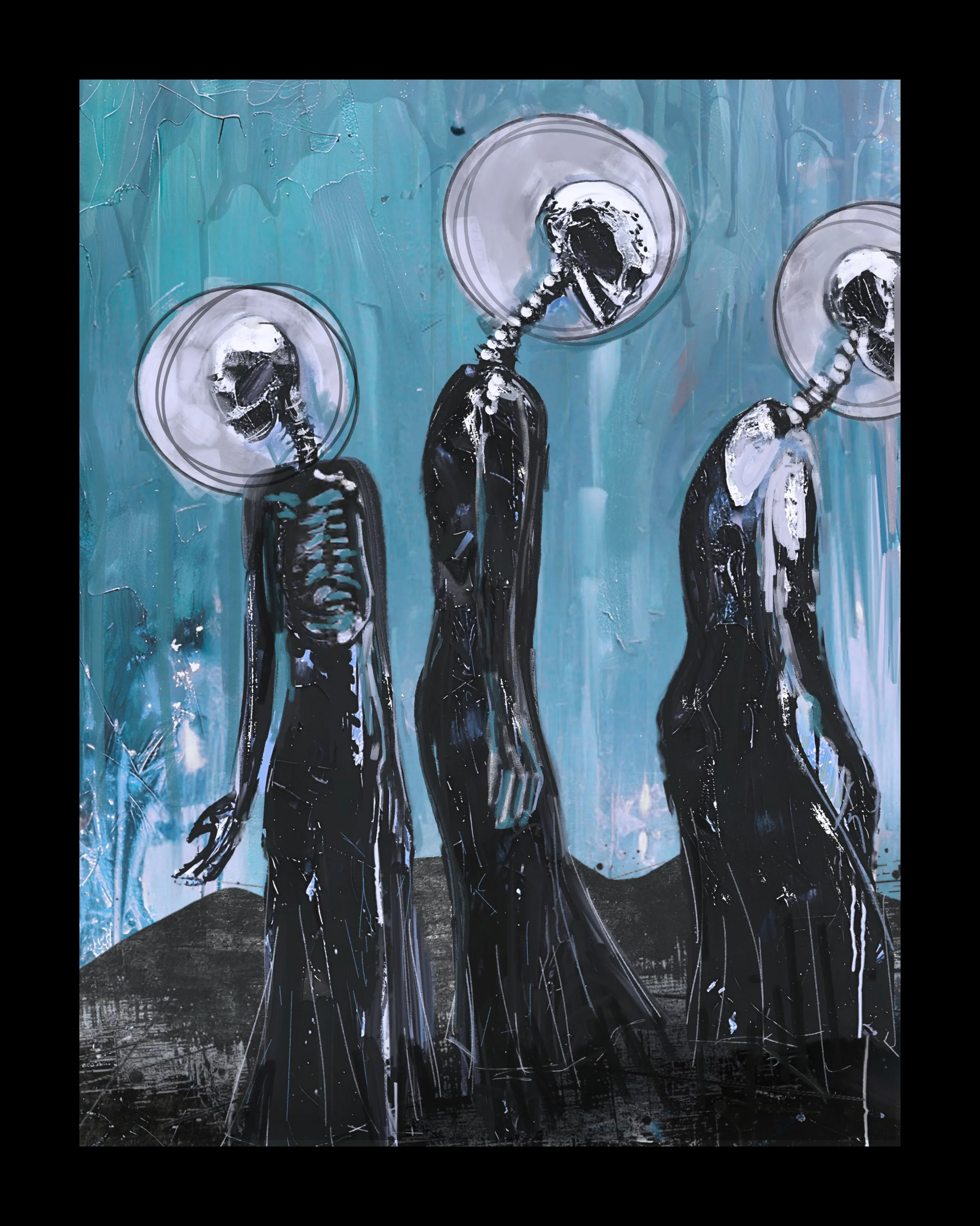 My work explores the body under pressure, caught within systems of force, memory, and transformation. I move between figurative and symbolic imagery, often pairing natural elements with skeletal forms to consider what persists over time. Recent work engages themes of migration, state power, and collective vulnerability, alongside ritual and psychoanalytic influences (Kristeva, Lacan).